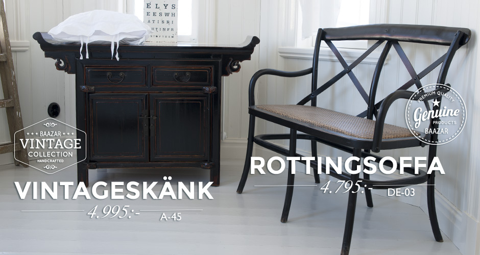 Baazar har möbler till det sparsmakade strama hemmet med rena linjer och sobra färger, vill man ka man använda en färgstark gammal möbel som solitär. Baazar har även möbler och inredning till det orientaliskt präglade hemmet med mycket färger och värme. Här finns även överraskningar inspirerade av industralismen, fransk lantstil och mycket mera. Det är blandningen som skapar helheten. Stilen är din, Baazar kan hjälpa dig att hitta och utveckla den.