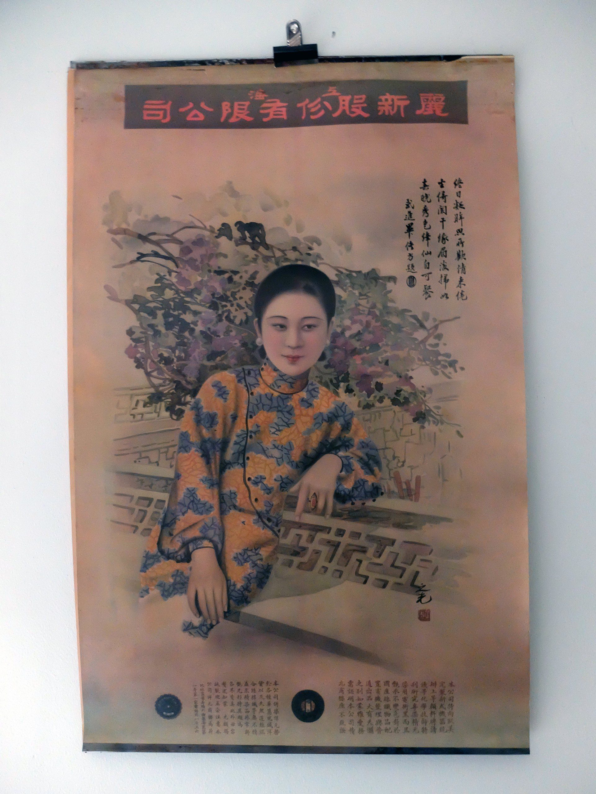 Vintage poster med klassiskt reklamtryck på gammalt papper med posterskenor av metall. Storlek 78,5 cm hög, 50 cm bred.